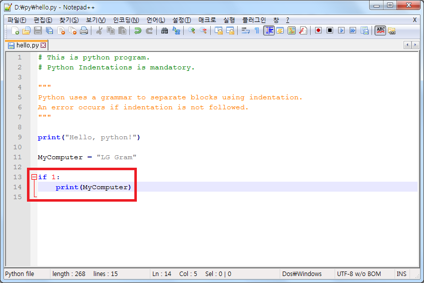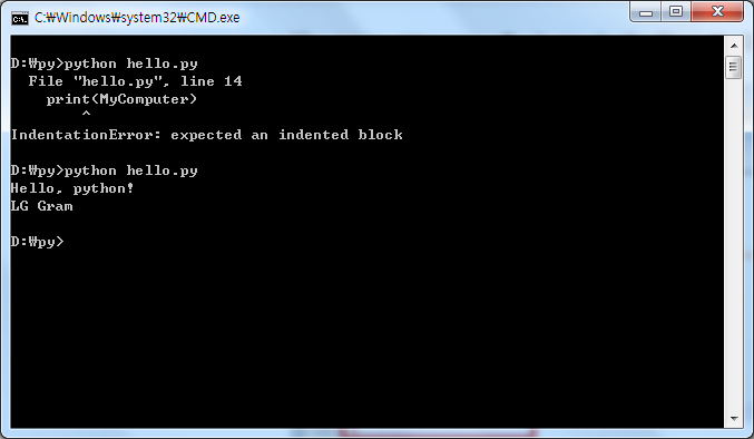 들여쓰기를 적용하면 오류가 없어지고 정상적으로 실행된다.